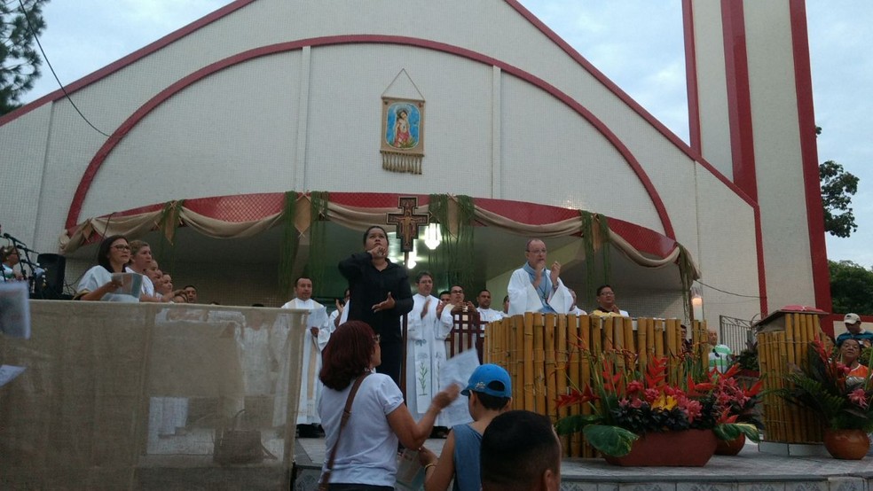 A missa foi celebrada pelo bispo da Diocese de Santarém (Foto: Sílvia Vieira/G1)