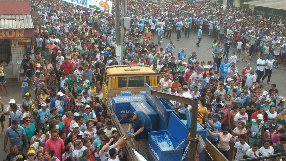 A solidariedade dos irmãos que distribuem água para os romeiros (Foto: Sílvia Vieira/G1)