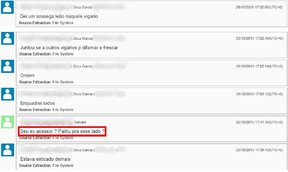 Uma das conversas, de setembro de 2015, mostra um suposto rompimento entre Pávulo e o intermediário. O blogueiro se refere a André como "carta fora do game". Ele diz que deu um "sossega leão" no homem após ele fazer difamações. A Polícia Federal vai aprofundar as investigações sobre essa situação.