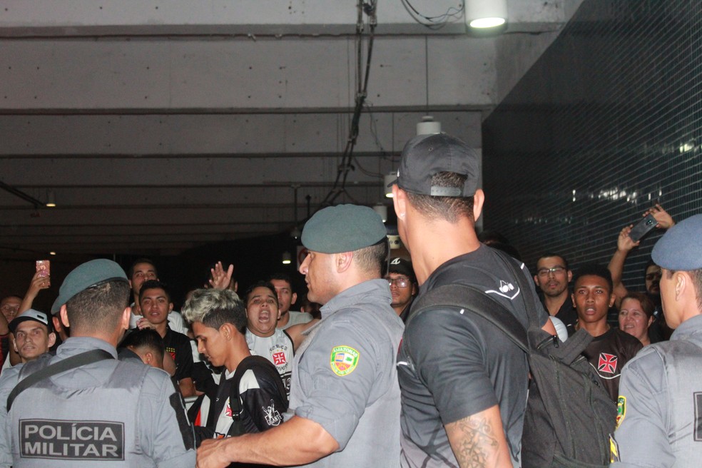 Também teve protesto contra o presidente Alexandre Campello e gritos de “time sem vergonha”, esses já na entrada do ônibus. O que chamou atenção é que antes do Vasco passar pelo saguão, um torcedor do Flamengo precisou enfrentar a multidão vascaína. Fora as provocações, nada de violento aconteceu.