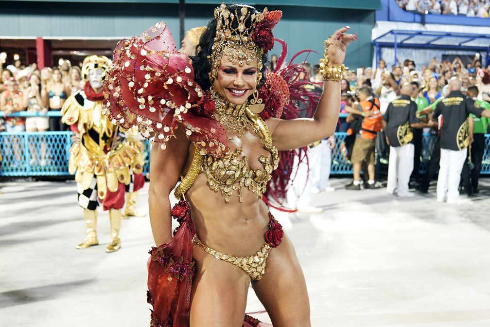 Além da ótima física da rainha, chamou atenção também a fantasia de Vivi, que representava a magia da dança, uma cigana sem costeiro, mas que conseguia evoluir com um véu.